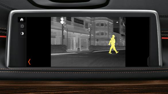 Có một camera hồng ngoại gắn trên màng lưới tản nhiệt của xe BMW sẽ truyền dữ liệu hình ảnh của người hoặc con thú trực tiếp lên màn hình điều khiển.